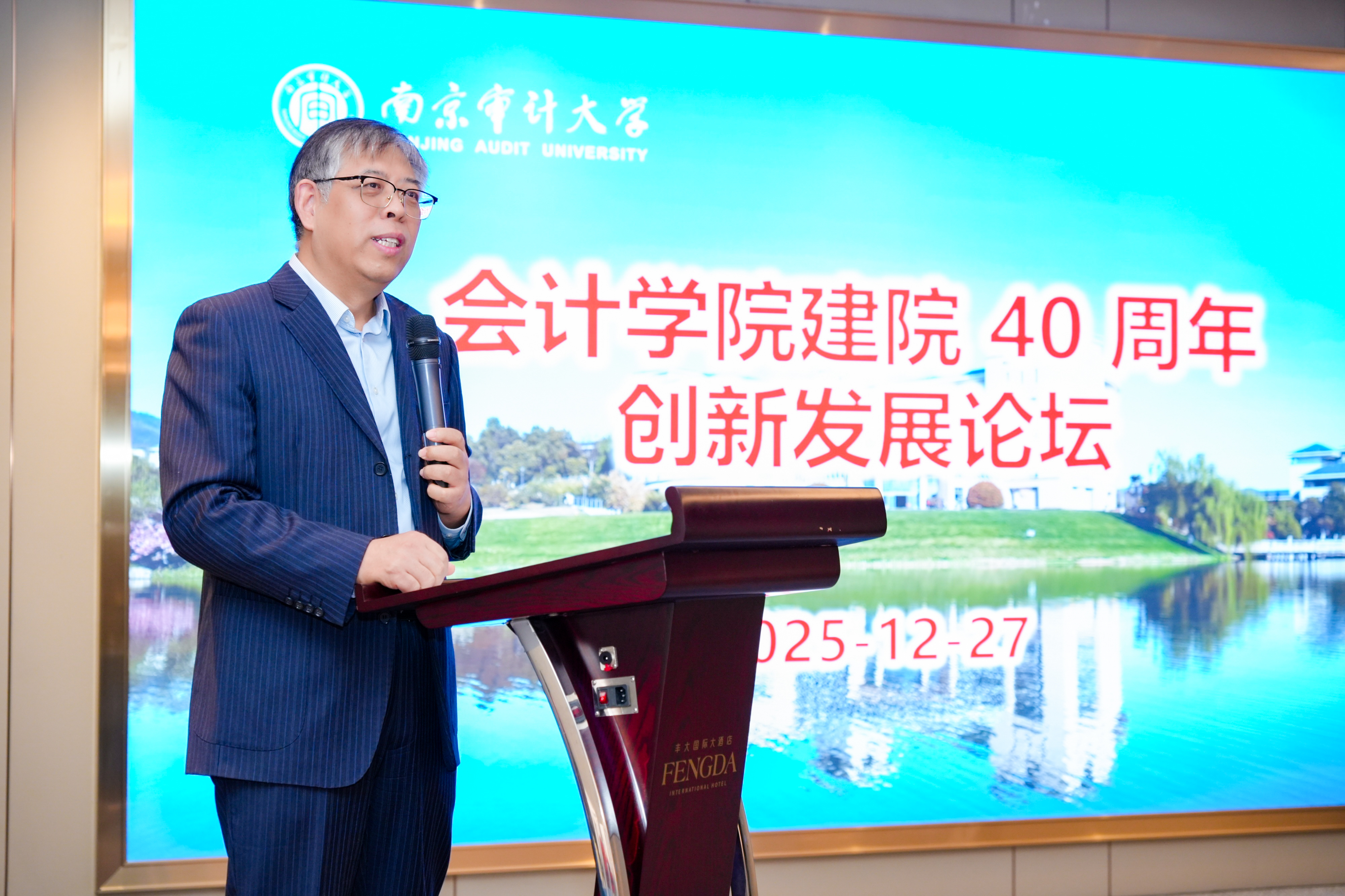 2025年12月27日,为庆祝手机足彩投注网站 建院40周年,手机足彩投注网站 以“创新发展”为主题,举办“足彩投注 建院40周年创新发展论坛”。南京大学会计与财务研究院首席教授朱元午教授、厦门大学曲晓辉教授、西南财经大学赵德武教授、暨南大学宋献中教授、广州大学魏明海教授、上海财经大学陈信元教授、北京大学陆正飞教授、厦门大学刘峰教授、南开大学刘志远教授、上海财经大学靳庆鲁教授、南京大学杨雄胜教授、南京审计大学党委常委、副校长陈冬华教授、手机足彩投注网站 院长温素彬教授、手机足彩投注网站 副院长凌华副教授,以及足彩投注 教师等出席本次会议,共同探讨数智时代会计学科的未来图景与会计人才培养改革的现实路径。开幕式由温素彬主持。