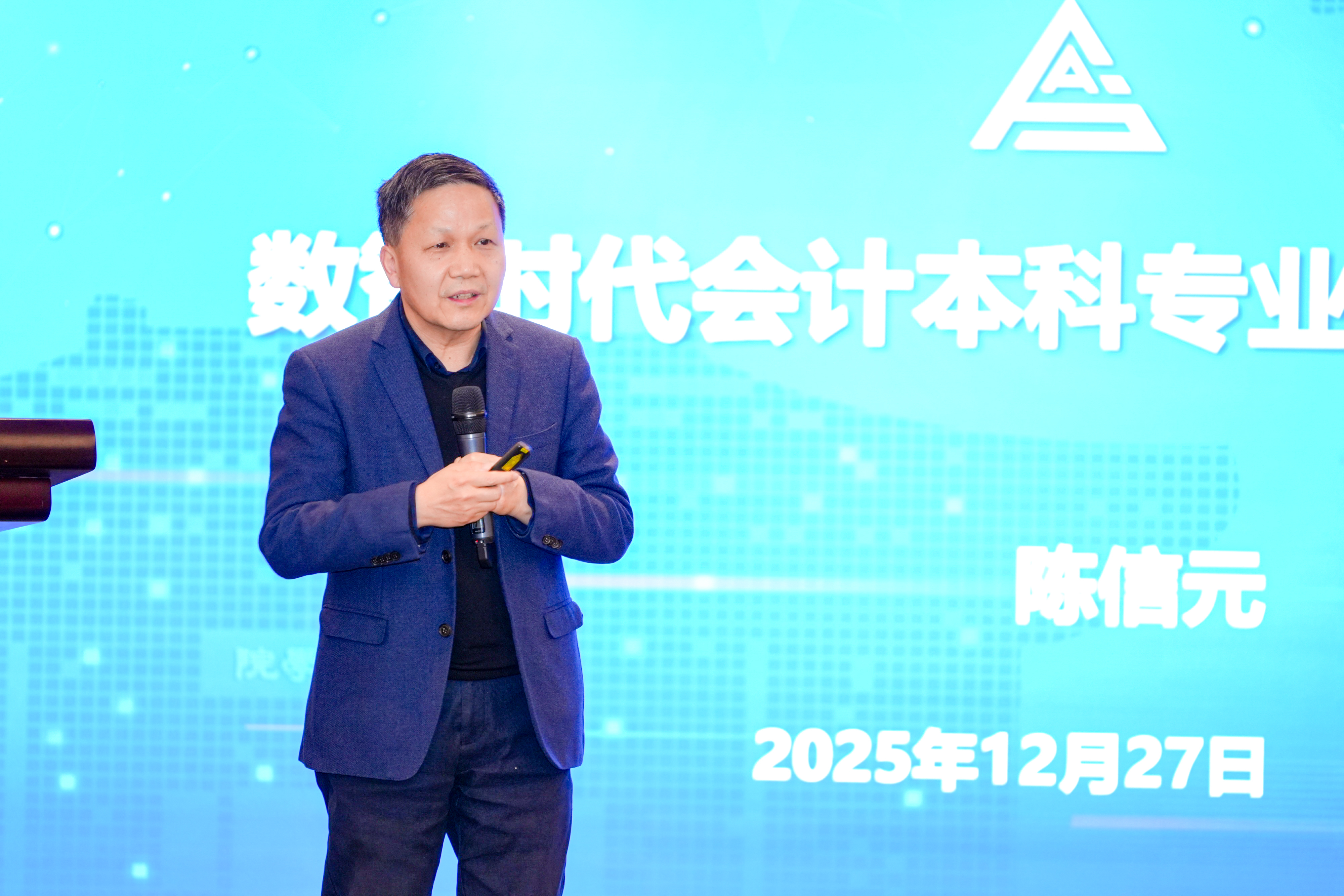 陈信元作“数智时代本科会计课程的重构”的主题报告,围绕会计学人才培养的现状、在数智化背景下的教学革新方向以及未来展望作了深入剖析。他首先剖析了当前会计学教育面临的结构性矛盾并提出了一系列会计学科建设的优化路径和改革思路,从账务自动化、会计与审计准则与智能化技术融合、数据挖掘与分析能力、系统思维与流程优化能力、法律法规掌握向数据安全AI伦理拓展等角度,为构建更具前瞻性和适应性的人才培养框架提出了建设性建议。他强调,本科阶段加强数字化人才培养至关重要,但绝不能忽视人文素养与创新能力的培育,人工智能虽能高效处理大量数据,然而短期内无法取代人类在判断、伦理与创造性方面的独特价值。