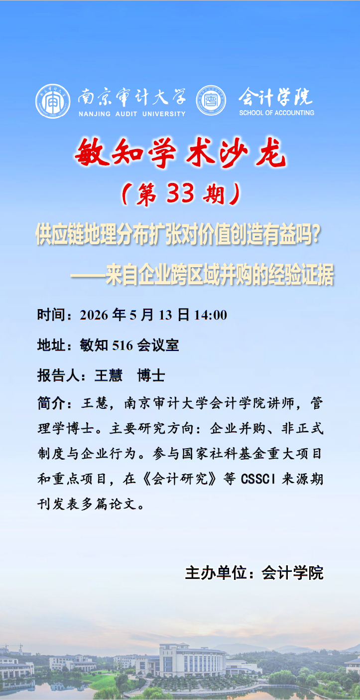敏知学术沙龙(第33期)王慧——供应链地理分布扩张对价值创造有益吗?——来自企业跨区域并购的经验证据