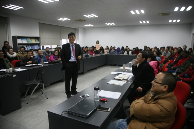 广大师生以及留学生的热烈欢迎,全场座无虚席,一些同学坚持站着听完报告。报告会上老师和同学们与Kim教授就相关问题进行了热烈的讨论与交流。报告结束后,黄中生副院长对本次学术报告会进行了总结,老师们和同学们纷纷表示从本次报告会中受益匪浅。