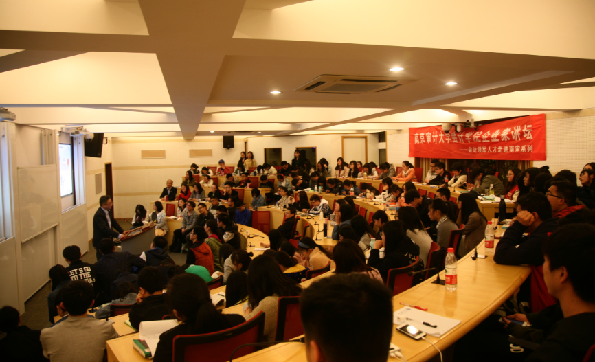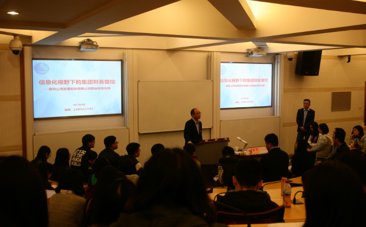 本次讲座的主题是《信息化视野下的集团财务管控——南京公用发展股份有限公司精益财务实践》。陈纬先生首先为我们简要介绍南京公用发展股份有限公司的发展历程、治理结构和公司业绩,之后以四个案例引出财务核算、资金结算、全面预算的“三算合一”管控体系。南京公用“三算合一”财务管控体系是从平台合一、流程合一和数据合一三个方面进行设计,通过信息化的创新手段形成“闭环”的财务管控模式,以实现事前控制、事中预警、事后分析。最后陈纬先生展示了“三算合一”管控体系的成果:合并报表“一键生成”、资金集中效益和全面预算管理落地实施,并介绍了管理会计的发展趋势,还对今后从事会计职业的同学们提出告诫,信息化的发展使得会计愈来愈多地为企业决策服务,同学们应有目标地进行学习,重塑能力架构,更好应对会计发展的挑战。在最后的交流环节,同学们踊跃发言,都表示受益匪浅。
